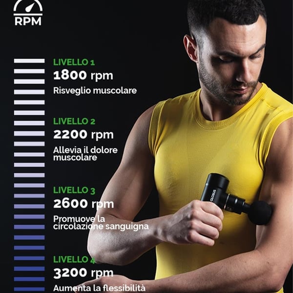 - RPM ajustables: 1800, 2200, 2600, e 3200 para personalizar a intensidade.