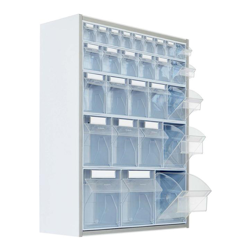 Armário mural para medicamentos: com 27 caixas basculantes transparentes