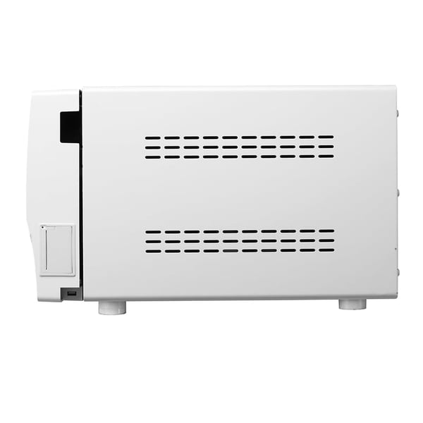 Esta versão de 12 litros, ajusta-se ao Diretivo CE 1023, ISO 13485 relativa aos pequenos esterilizadores de vapor. Além disso, conta com um gerador de vapor por separado e inumeráveis opções de segurança. Se a unidade se sobrecalienta e supera a pressão recomendada, o autoclave deixará de funcionar automaticamente por questões de segurança. Neste apartado de segurança, há que destacar que o autoclave dispõe de um tanque separado de águas residuais para recolher a água suja e assegurar que os encanamentos internos se mantêm sempre impolutas.