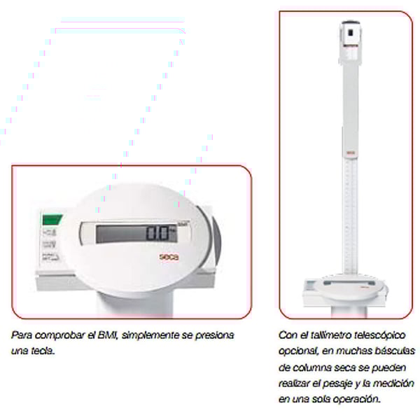 A SECA 769 é ideal para o uso diário em hospitais e centros médicos, pela sua baixa manutenção graças ao seu baixo consumo em pilhas, e a sua facilidade de transporte ao estar equipada com rodas. Equipada com o tallimetro facultativo, com um alcance de até 200cm, permite permite realizar a pesagem e a medição em uma só operação.