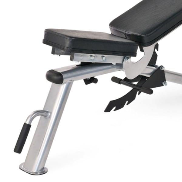 Um cómodo banco de pesas regulable com um respaldo de sete posições e um assento de duas posições, Adonis é perfeito tanto para exercícios em plano como inclinados e recusados.