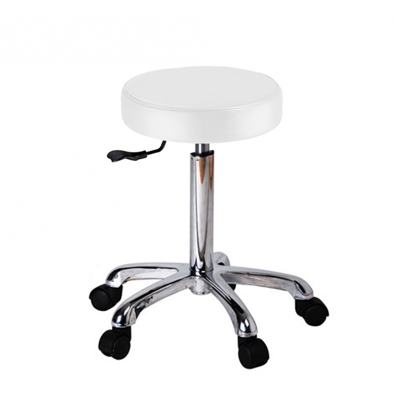 O modelo Fast é um prático banco que destaca pelo seu cuidado desenho ergonómico. Dispõe de um assento plano e circular com altura regulable mediante pistão de gás. Estofado alvo em PU de alta qualidade e base cromada com 5 rodas.