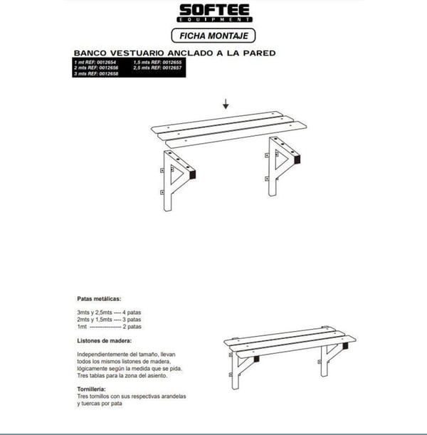 Composto por escuadras metálicas de secção 35 mm. para ancorar à parede e tabelas de madeira de secção 90 x 20 mm.