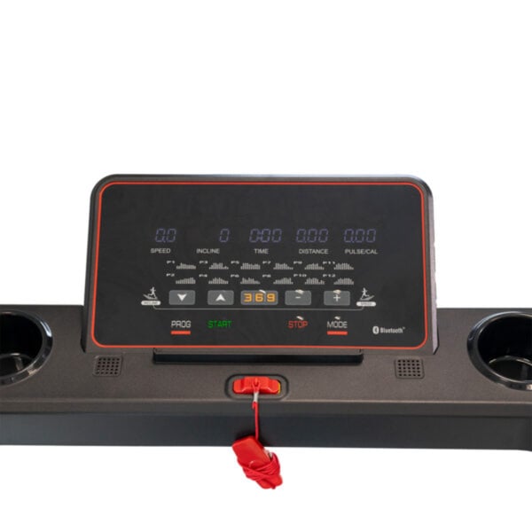- Inclui 12 programas e ecrã LED com indicadores de velocidade, inclinação, tempo, distância, calorias e pulso.