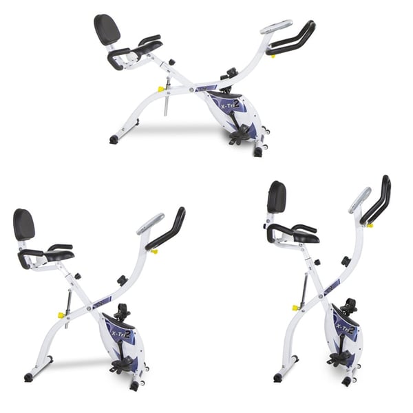 ¡Bicicleta estática plegable 3 em 1! Máxima versatilidad em um mínimo espaço. O X-Tri 2 permite treinar em 3 diferentes posições segundo as tuas necessidades, podendo eleger a postura mais cómoda (vertical, semi-reclinada e reclinada).