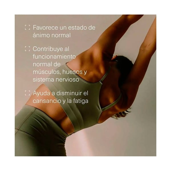 - Vitaminas que potenciam a energia e reduzem a fadiga: As vitaminas B5, B6 e C atuam em sinergia com o magnésio para favorecer o metabolismo energético normal e ajudar a diminuir o cansaço e a fadiga, contribuindo vitalidad diária.