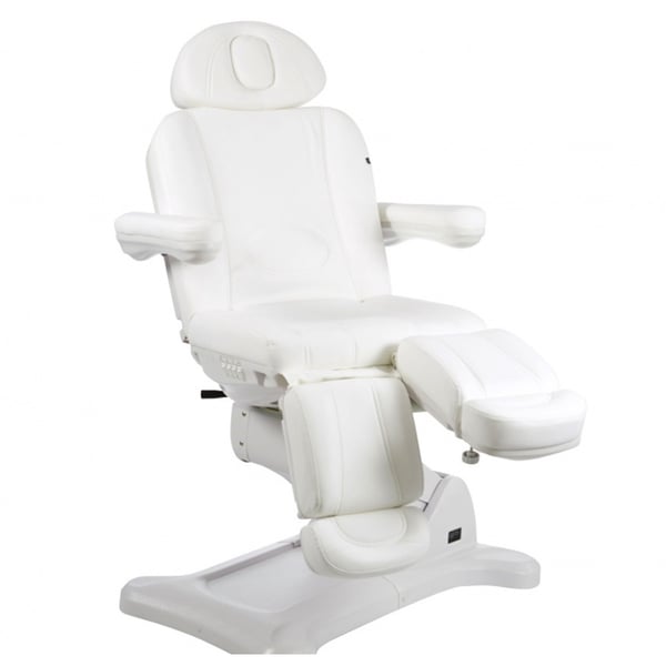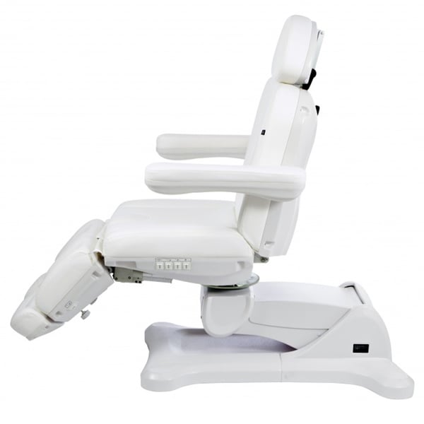 Cadeirão de podología de alta gama desenhado especialmente para otimizar o espaço de trabalho graças à possibilidade de rotação do cadeirão de 240°. Dispõe de 5 motores que controlam a altura, a inclinação do respaldo, a inclinação do assento e permitem a regulação automática e independente de ambos reposapiés.