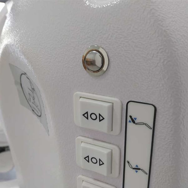 O fabricante passou por um processo de renovação de todos os seus cadeirões. Este processo levou-lhe a incluir uma botonera na parte trasera do cadeirão para facilitar o trabalho dos profissionais.