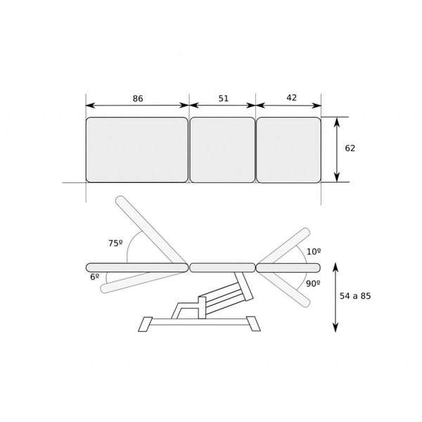 - Pernas: piecera elevable/reclinable