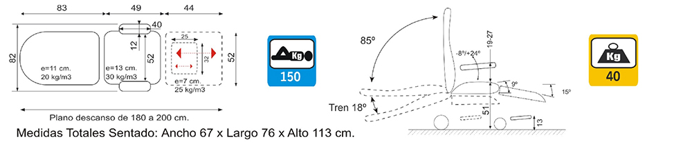- Reforço cervical, lumbar e ressaltes laterais ergonómicos.