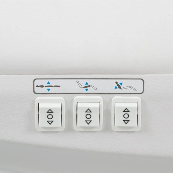 Esta versão conta com a função RESET para levar a marquesa/cadeirão de volta à posição zero, com os complementos pedal de pé (Foot Controller) ou mediante o comando de mão (Hand Controller).