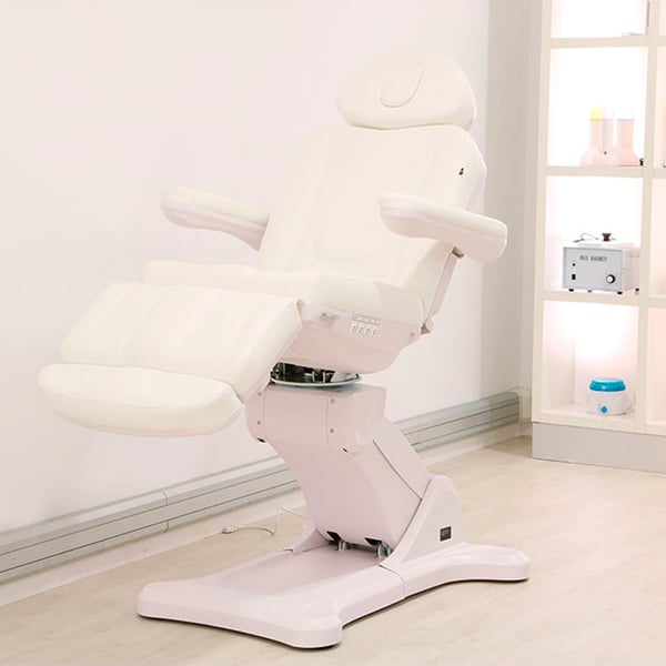 Cadeirão marquesa de estética de alta gama Tempo: Elétrico com três motores para controlar a altura e inclinação do respaldo e cadeirão rotatório de 240º com posição de Trendelenburg