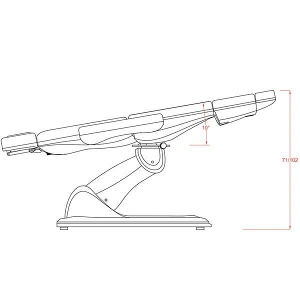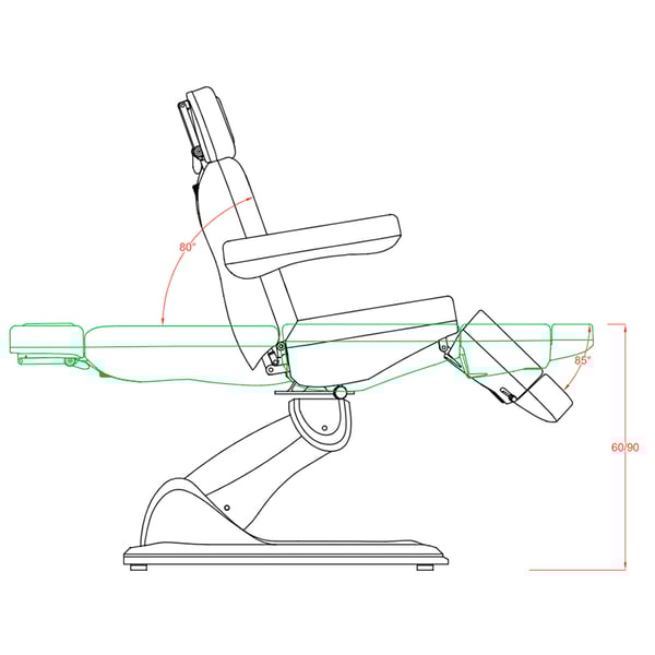 O seu desenho permitir-te-á desfrutar do conforto em qualquer tratamento, já seja facial ou de corpo inteiro, além disso, conta com múltiplas variantes para realizar tratamentos de pedicura . A marquesa possui três corpos e dispõe de três motores para regular a altura, a inclinação do respaldo e para vascular a marquesa completamente. O reposapiés pode-se regular mediante pistão de gás.