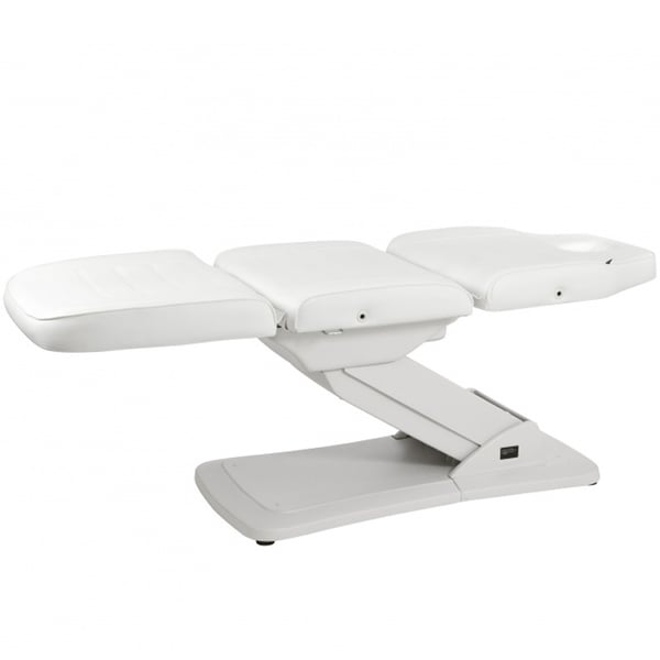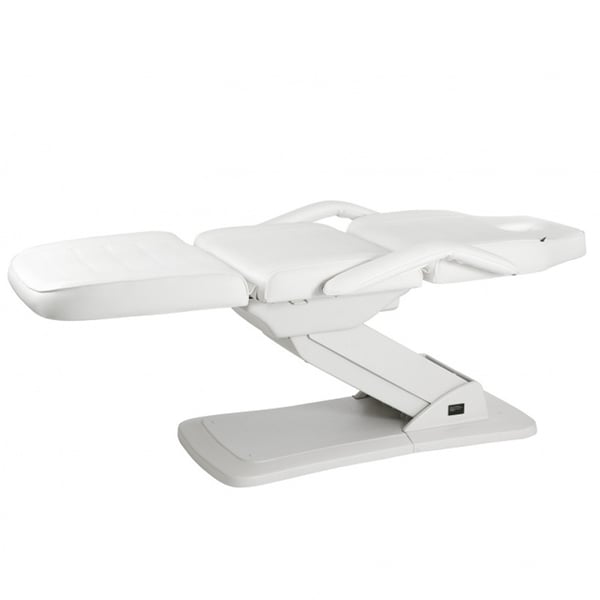 Cadeirão marquesa de estética Ster: Elétrico com três motores para regular a altura e inclinação do respaldo, reposabrazos removível e buraco facial