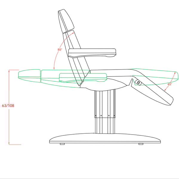 Cadeirão marquesa de estética Vome: Elétrico com três motores para regular a altura e inclinação do respaldo, grande conforto e reposabrazos abatibles
