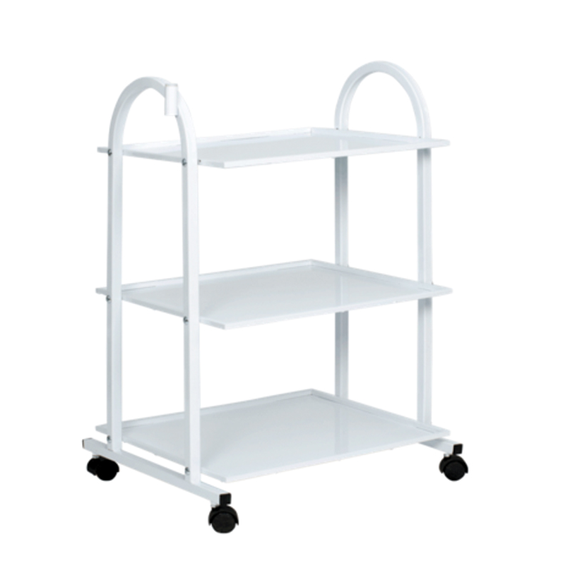 Carrinho auxiliar metálico, fabricado em metal resistente que incorpora 3 estantes. Desenhado para instalar os aparelhos próprios de fisioterapia e estética. Apresenta uma linha clássica ideal para centros de estética, institutos de beleza.
