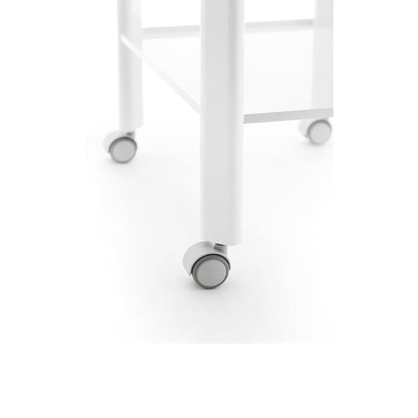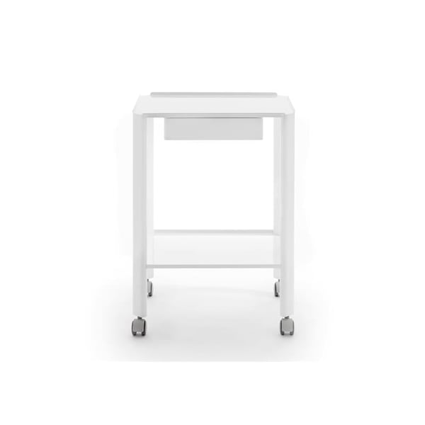 - É uma mesa móvel de aço esmaltado com 2 bandejas e uma gaveta na parte delantera.