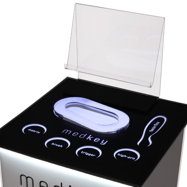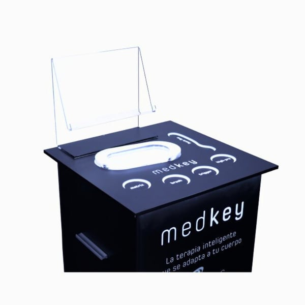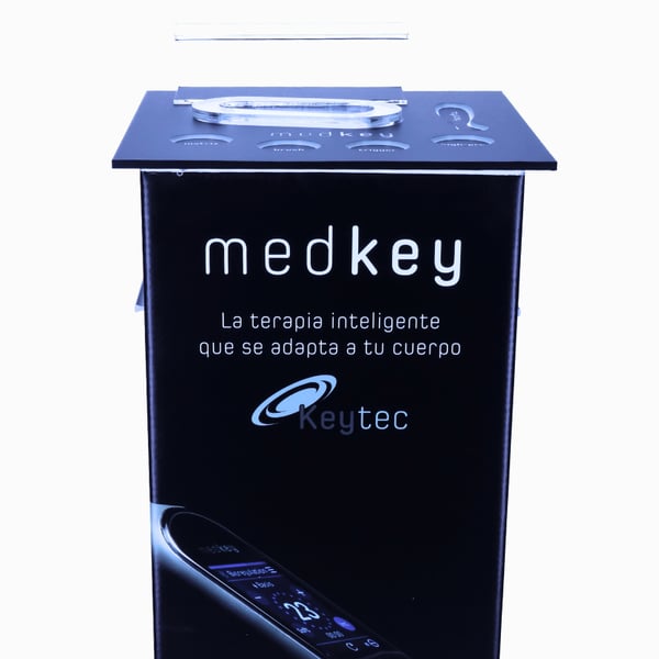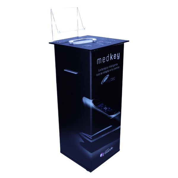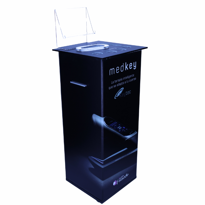 A sua plataforma de metacrilato com iluminação LED integrada permite manter todos os elementos do teu dispositivo Medkey perfeitamente organizados e sempre à vista, contribuindo um toque moderno e profissional ao teu espaço de trabalho.