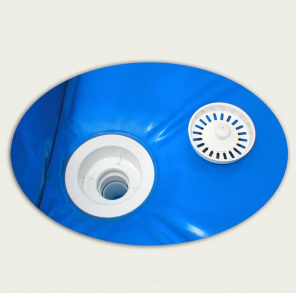 O leito de lona, tem um desague que permite evacuar a água de forma singela