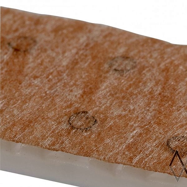 Chincheta de aço revestida por ambos lados com adesivos têxteis. Este tipo de montagem evita que se caia e que ao depegarla, a chincheta fique aderida ao corpo.