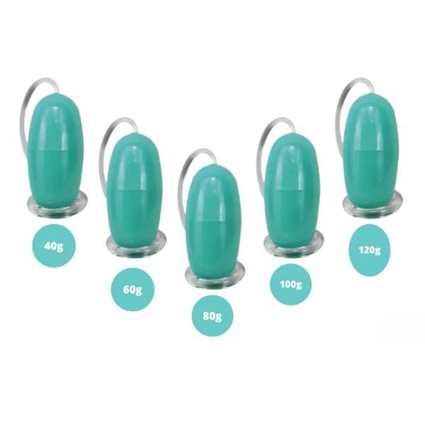 Existem 5 pesos diferentes: 40g, 60g, 80g, 100g e 120g, que podem ser utilizados progressivamente para fortalecer os músculos. Os Cones de Peridell são mais grossos, o que reduz as possibilidades de deslocação e queda, contribuindo a um tratamento mais eficaz.