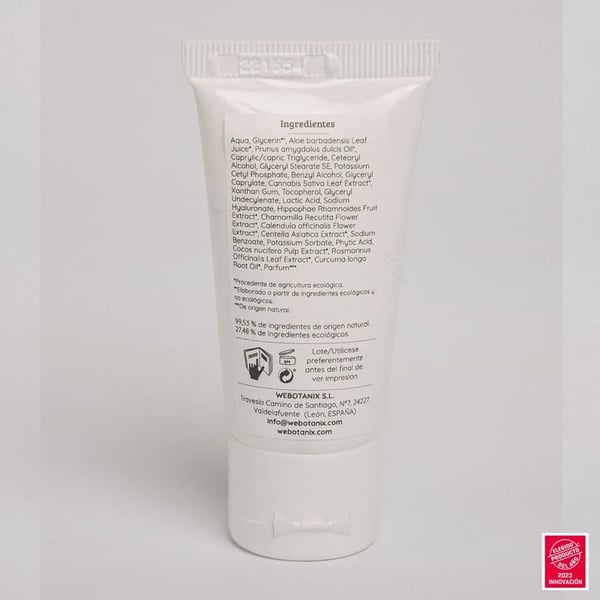 INCI: Aqua, Glycerin*, Aloés barbadensis Leaf Juice, Prunus amygdalus dulcis Oil*, Caprylic/capric Triglyceride, Cetearyl Álcool, Glyceryl Stearate SE, Potassium Cetyl Phosphate, Benzyl Álcool, Glyceryl Caprylate, Cannabis Sativa Leaf Extract*, Xanthan Gum, Tocopherol, Glyceryl Undecylenate, Lactic Acid, Sodium Hyaluronate, Hippophae Rhamnoides Fruit Extract*, Chamomilla Recutita Flower Extract*, Calendula officinalis Flower Extract*, Centella Asiatica Extract*, Sodium Benzoate, Potassium Sorbate, Phytic Acid, Cocos nucifera Pulp Extract, Rosmarinus Officinalis Leaf Extract*, Curcuma longa Root Oil*, Parfum***.