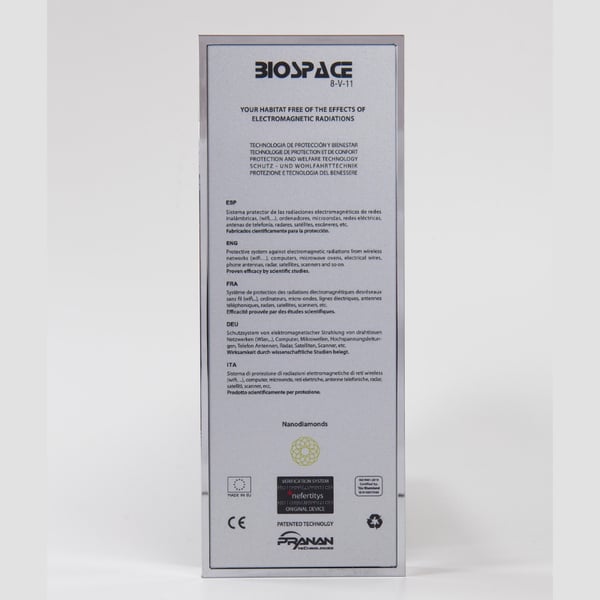 Dispositivo de proteção em frente a radiação electromagnética BIOSPACE 8V11 diamond. Com técnología Pranan validada a nível científico. Área de proteção até 530 m2. Ideal para o lar e meios de trabalho