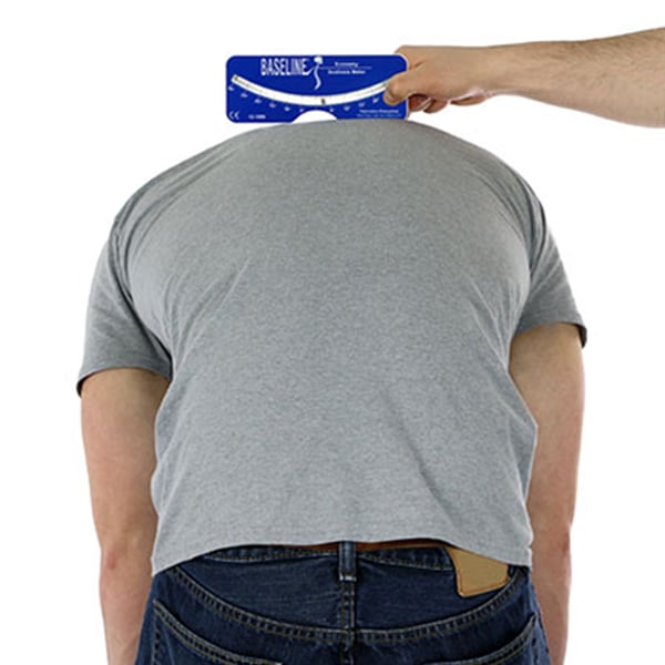 O escoliómetro de tipo Bunnel Baseline utiliza-se para medir o grau de rotação de uma deformidad das costas.