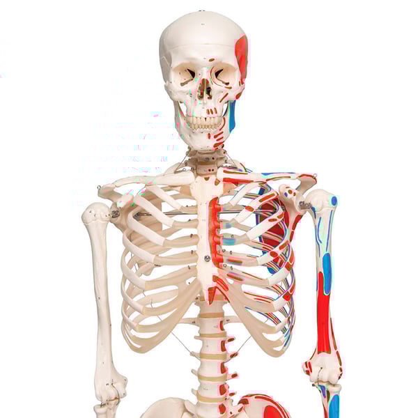 O modelo de esqueleto anatómico Max com músculos possui todas as vantagens de um esqueleto nos oferecendo além disso a interação entre os músculos e o esqueleto.
