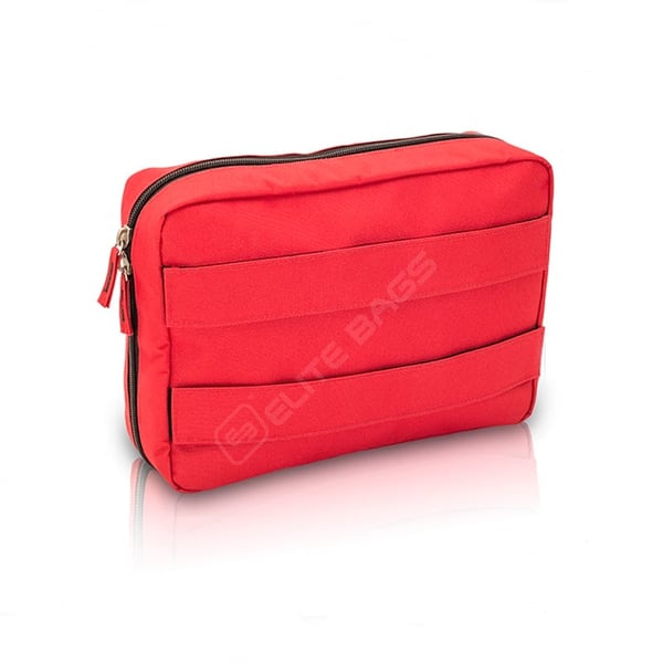 - Dois bolsos planos, um deles com cremalheira, para luvas, gazes e demais apósitos.