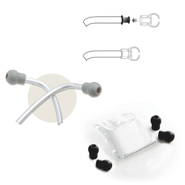 - Almohadillas de silicona Adsoft™ Plus com novas conexões a pressão para o último em conforto de uso e selado acústico.