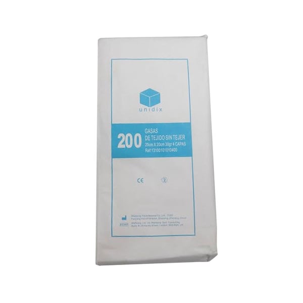Gaze Tecido sem Tecer não estéril: Aberta 20 x 20 cm, Dobrada 10 x 10cm (200 unidades)