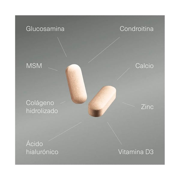 - Apoio integral para articulações e cartílago: A glucosamina e a condroitina são componentes naturais do cartílago que contribuem à sua estrutura e elasticidade, apoiando a nutrição e manutenção da matriz articular.