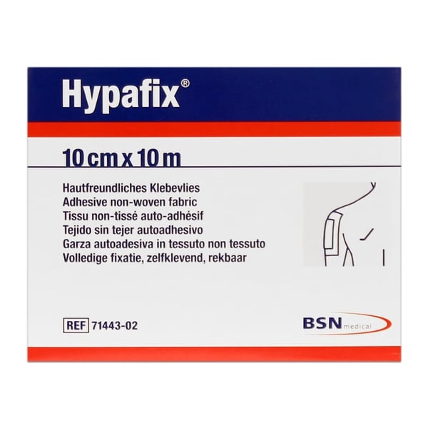 Hypafix é um adesivo, teia não tecida de folha livre para uma fixação segura. Está feito de material de poliéster de cor branco e recoberto com adesivo hipoalergénico.