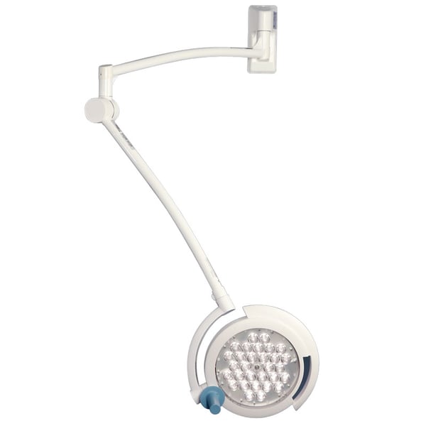 Luminaria compacta de cirurgia LED disponível em três versões: teto, parede e base rodable.