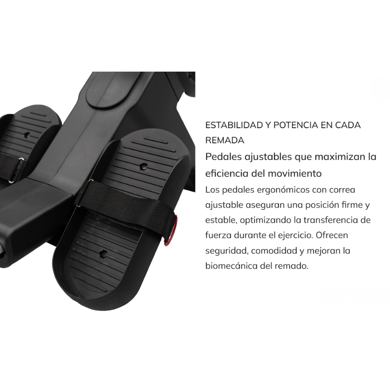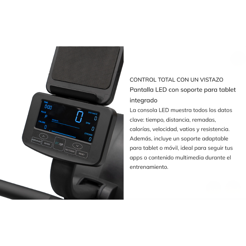 - Sistema de resistência ar + magnética para uma sensação de remado mais natural, fluída e controlada.