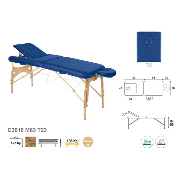 Nova e versátil marquesa plegable Ecopostural de dois corpos, ideal para todo o tipo de especialidades. Consta de cabecero regulable e uma estrutura de madeira natural.