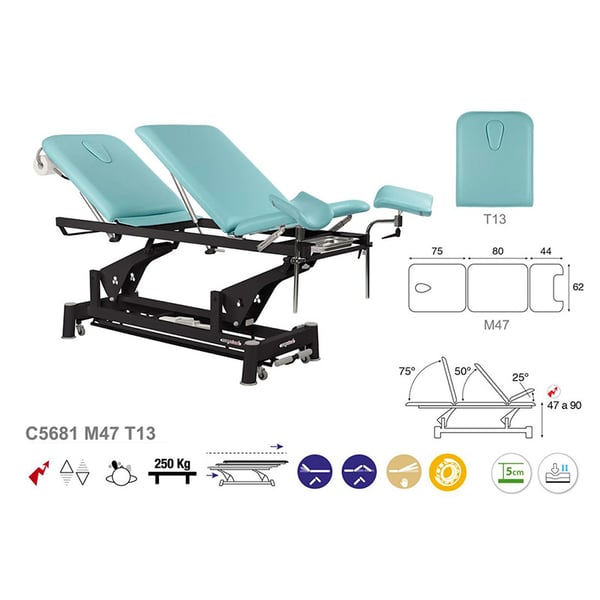 Marquesa elétrica, Ecopostural, ideal para especialidades: três corpos, com perneras, estrutura de biela preta e cabeça T13 (62 x 200 cm)