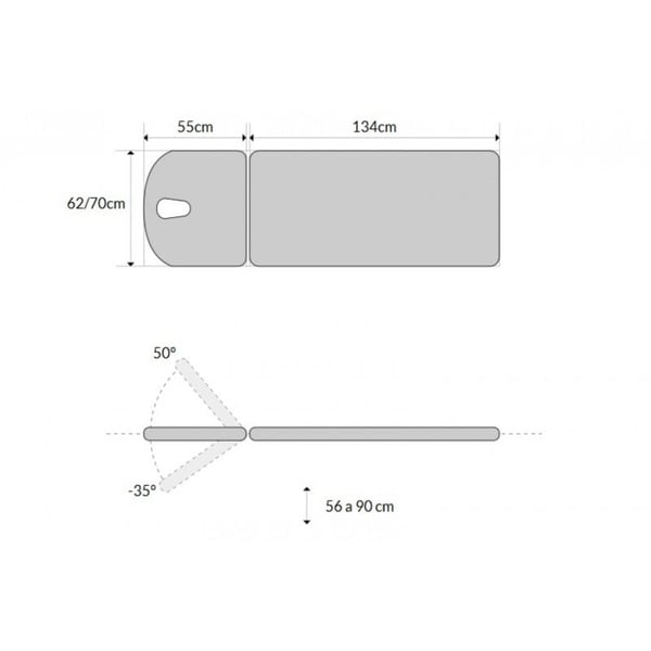 - Cabecero elevable/reclinable em negativo: -35º a 50. º