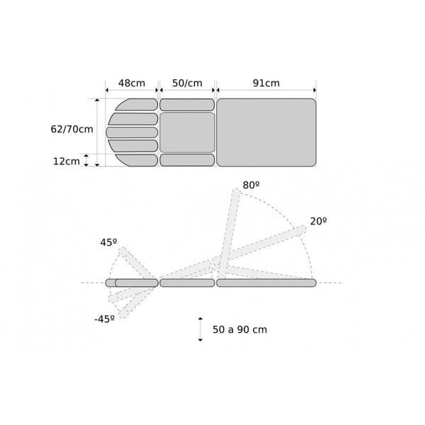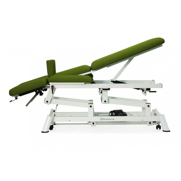 - Funcionalidades mediante dois pistões de gás: piecera (terceiro corpo), dobra central e Trendelenburg