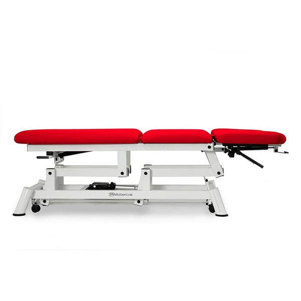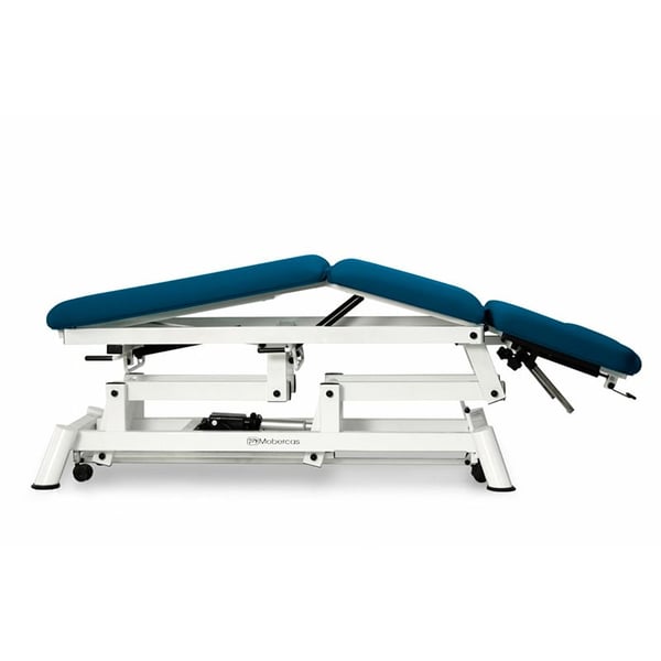 Marquesa elétrica para osteopatia: cinco corpos com respaldo reclinable em negativo, reposabrazos regulables, portarrolos, tampa facial e rodas escamoteables (dois modelos disponíveis)