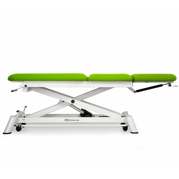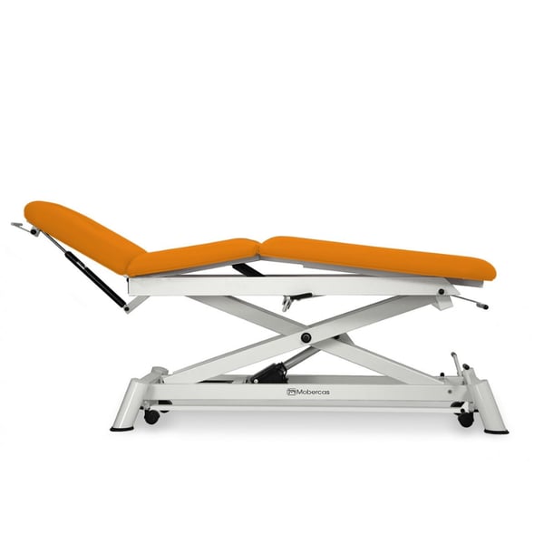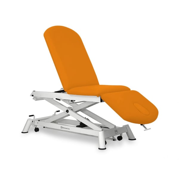 Marquesa elétrica de três corpos, com respaldo reclinable em negativo e subida reta sem deslocação lateral. Desenhada especialmente para tratamentos de osteopatia.