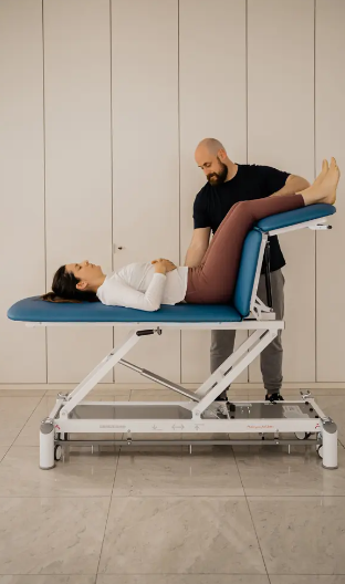 O acionamento da cabeça e o apoyapiés mediante pistão de gás assegura um ajuste suave e preciso, proporcionando uma experiência cómoda tanto para o paciente como para o terapeuta. Além disso, o motor elétrico de alta potência com uma força de empurre de 8000 N garante um funcionamento eficiente e fiável em todo momento.