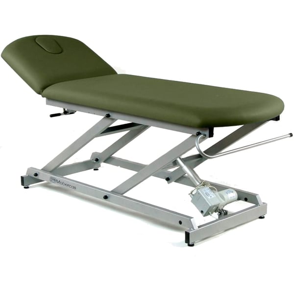Assim mesmo, tem a opção de acrescentar-lhe rodas escamoteables aptas para transladar trechos curtos aos pacientes ou mobilizar a marquesa para realizar o tratamento. De igual forma, dispõe de regulação em altura elétrica com comando a distância, graças ao motor elevador.