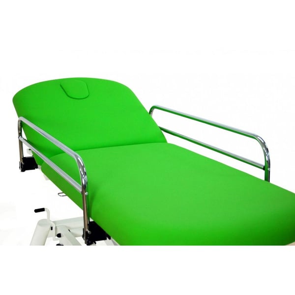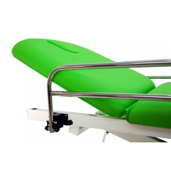 Além disso, dispõe de rodas escamoteables aptas para transladar trechos curtos aos pacientes ou mobilizar a marquesa para realizar o tratamento.