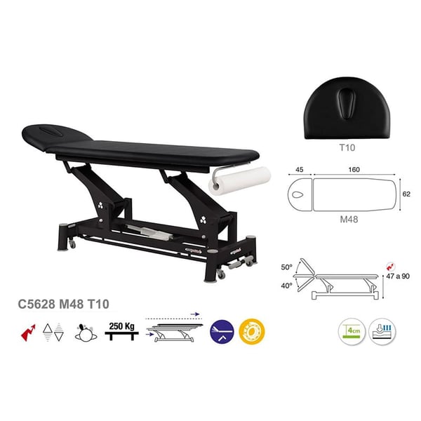 Marquesa elétrica técnica Ecopostural: dois corpos com estrutura de biela preta e cabeça T10 (62 x 207 cm)