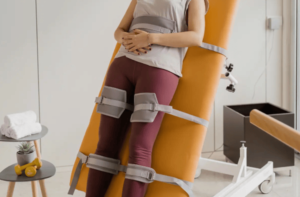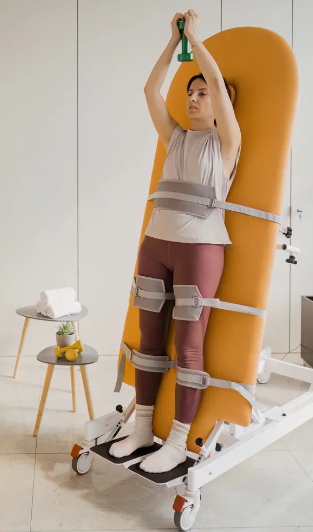 - O script central facilita a fixação das cinchas de segurança nos membros inferiores; assim mesmo, permite libertar um membro para possíveis exercícios dados pelo terapeuta.