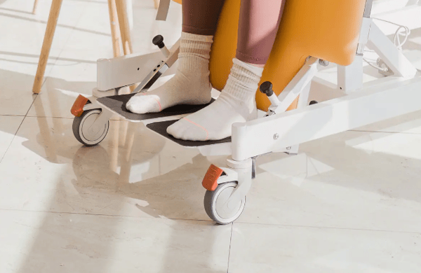 - Apoyapiés para ambos pés com regulação independente em proclive e declive.