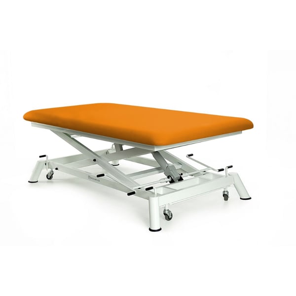 Marquesa hidráulica bobath de uns corpos, tipo tesoura, com subida reta sem deslocação lateral e com rodas escamoteables. Duas medidas disponíveis: 190cm x 100cm ou 200cm x 120cm