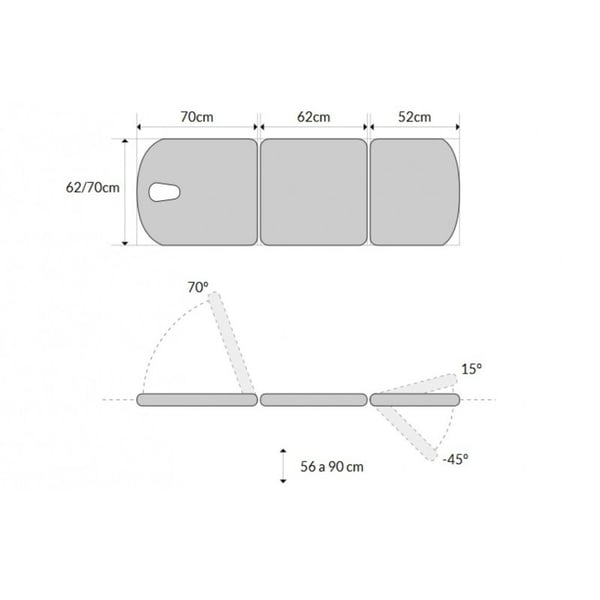 - Cabecero inclinable / declinable: 15º a -45º